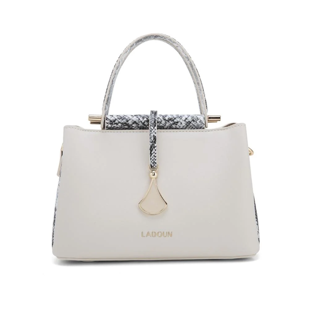 تميزي بإطلالة راقية مع شنطة يد نسائية، تجمع بين التصميم العملي والجمال الفاخر لتكون رفيقتك المثالية لكل مناسبة، وتحتوي على شعار لادون الصدفة المميزة.