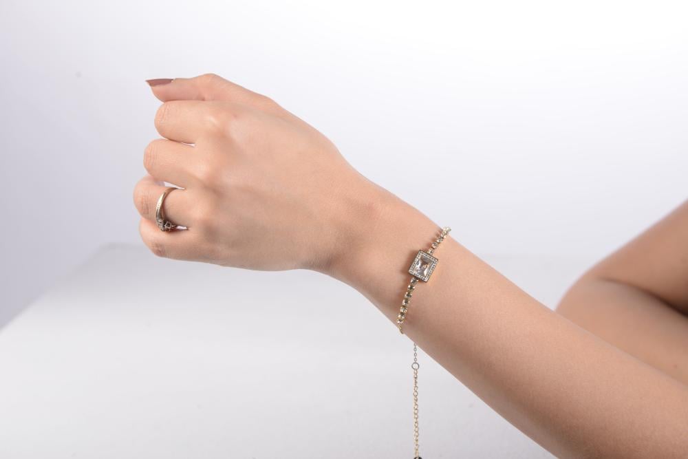 مزودة بسلسلة مزدوجة قابلة للتعديل لتناسب مختلف قياسات المعصم، ما يجعلها خيارًا مثاليًا للراحة والأناقة في آنٍ واحد.