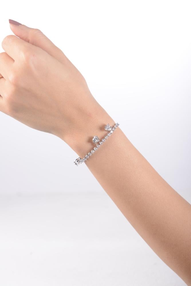أضيفي لمسة من الرقي إلى إطلالتك مع هذه الإسورة الأنيقة المصنوعة من أستيل لامع عالي الجودة. تتميز بتصميم ناعم مرصع بفصوص براقة تمنحها مظهرًا فاخرًا يلفت الأنظار.