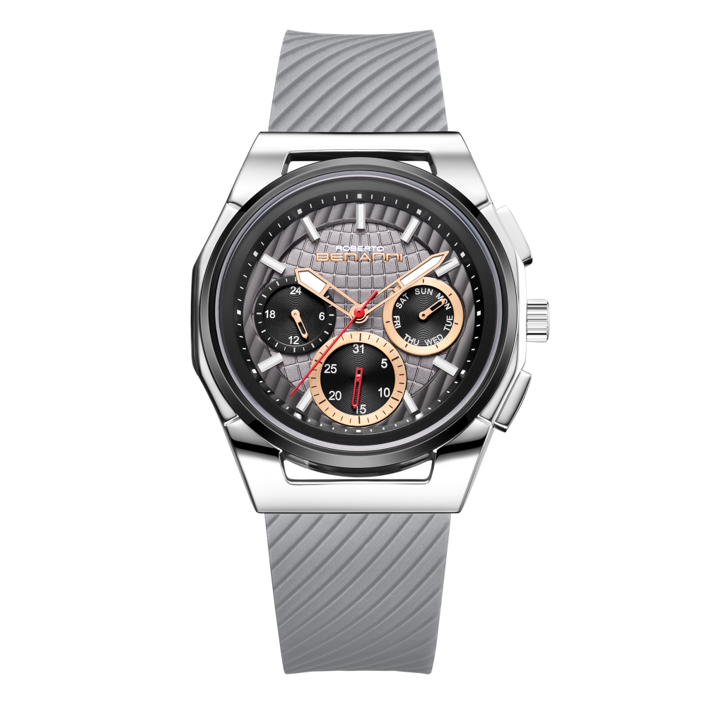 • ساعة رجالية مذهلة من روبيرتو بيناني بسير من الربل باللون الرمادي الكلاسيكي.