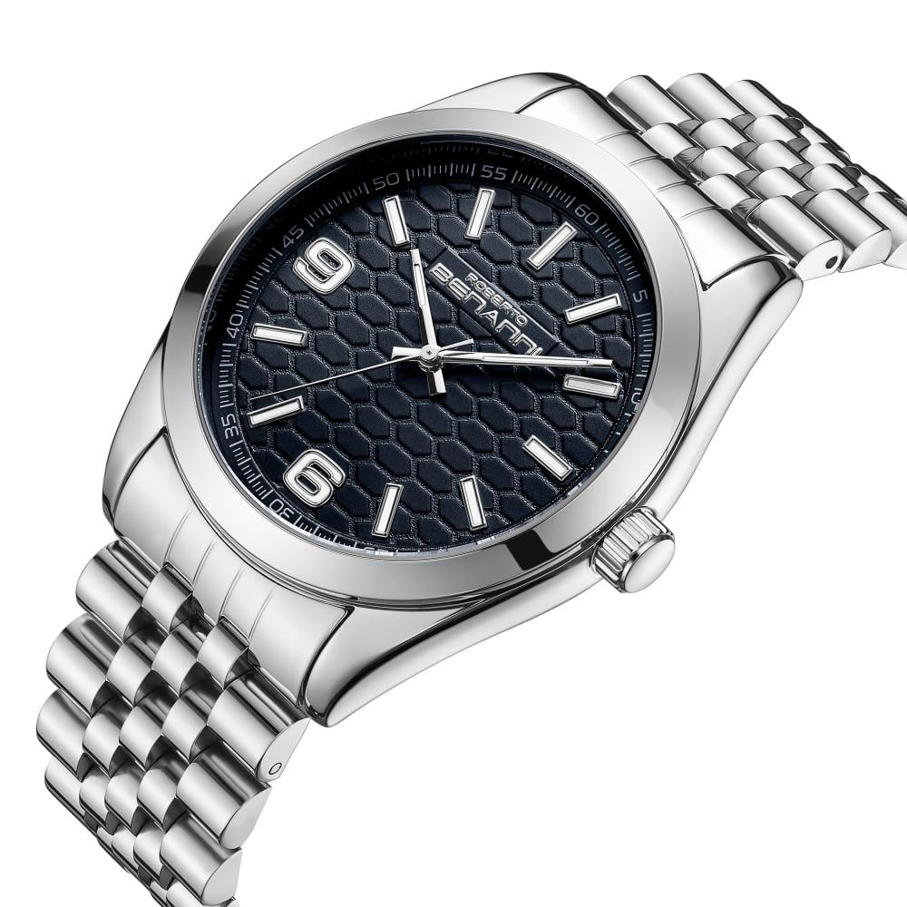 • الحركة: تعمل الساعة بحركة كوارتز دقيقة، مما يوفر لك دقة في الوقت وثقة في الأداء.