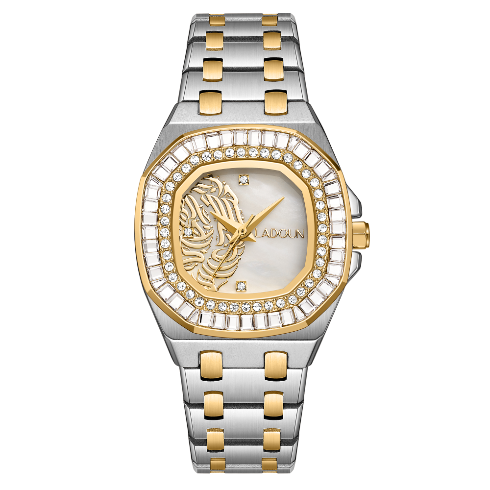 ساعة نسائية فاخرة من LADOUN – تصميم أنيق بلون ذهبي وفضي