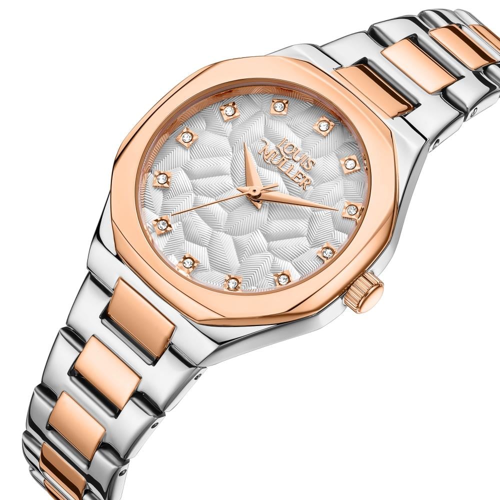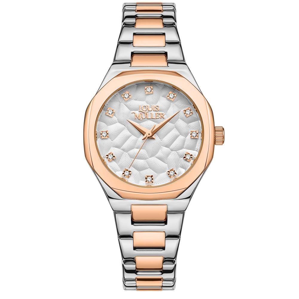ساعة نسائية فاخرة من LOUIS MULLER – تناغم الألوان وبريق بالكريستال