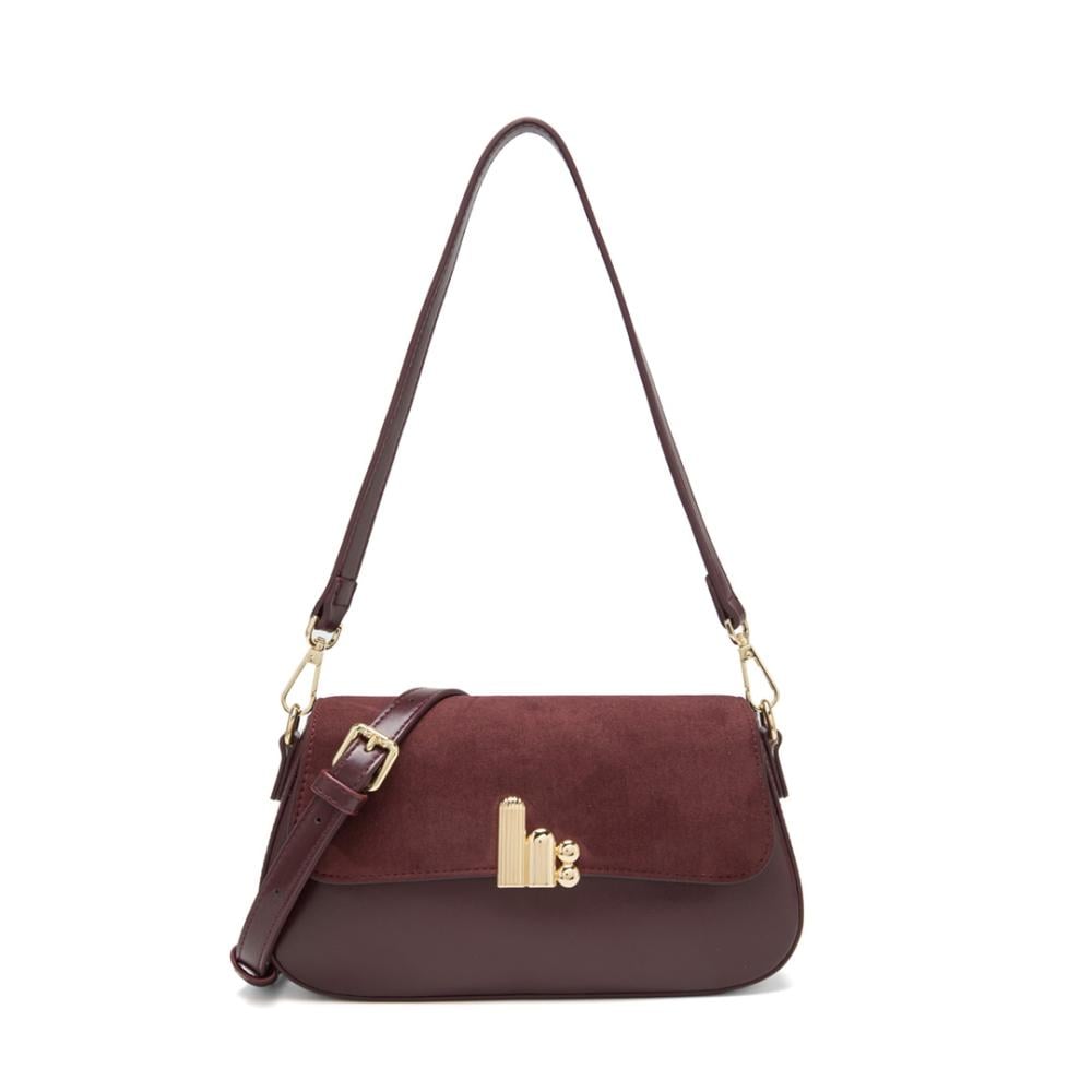 حقيبه يد فآخرة باللون العنابي من لادون أنيقة بتصميم كلاسيكي بلمسة عصرية، تجمع بين الجلد الناعم والشمواه الفاخر خفيفة الوزن رغم حجمها العملي، ما يجعلها رفيقة مثالية في كل مغامراتك اليومية دون عناء تفاصيل أنيقة باللون الذهبي، لتمنحك لمسة من الفخامة والرقي.