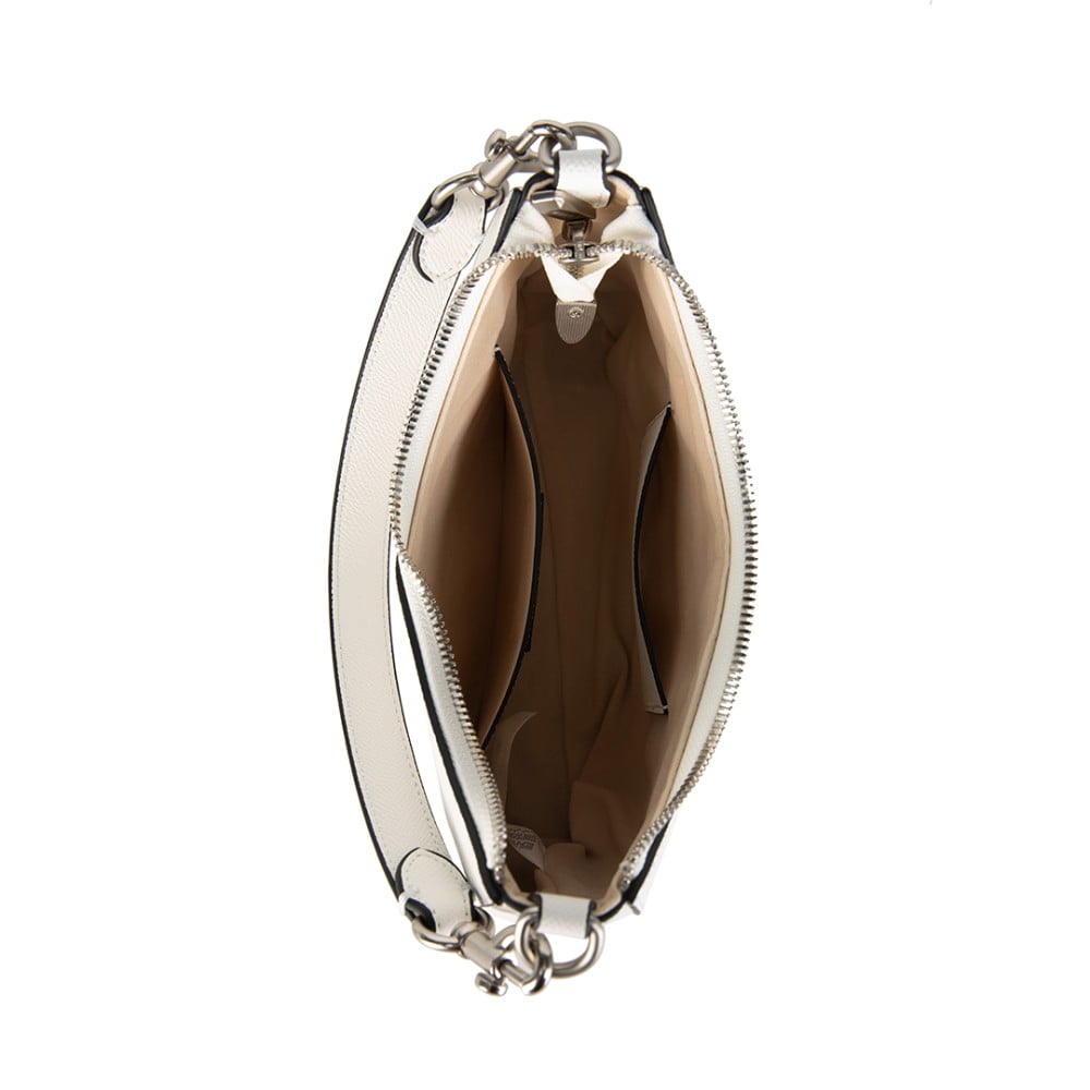• اللون الأبيض الكلاسيكي الذي يناسب جميع الإطلالات، مما يجعل الحقيبة قطعة متعددة الاستخدامات.