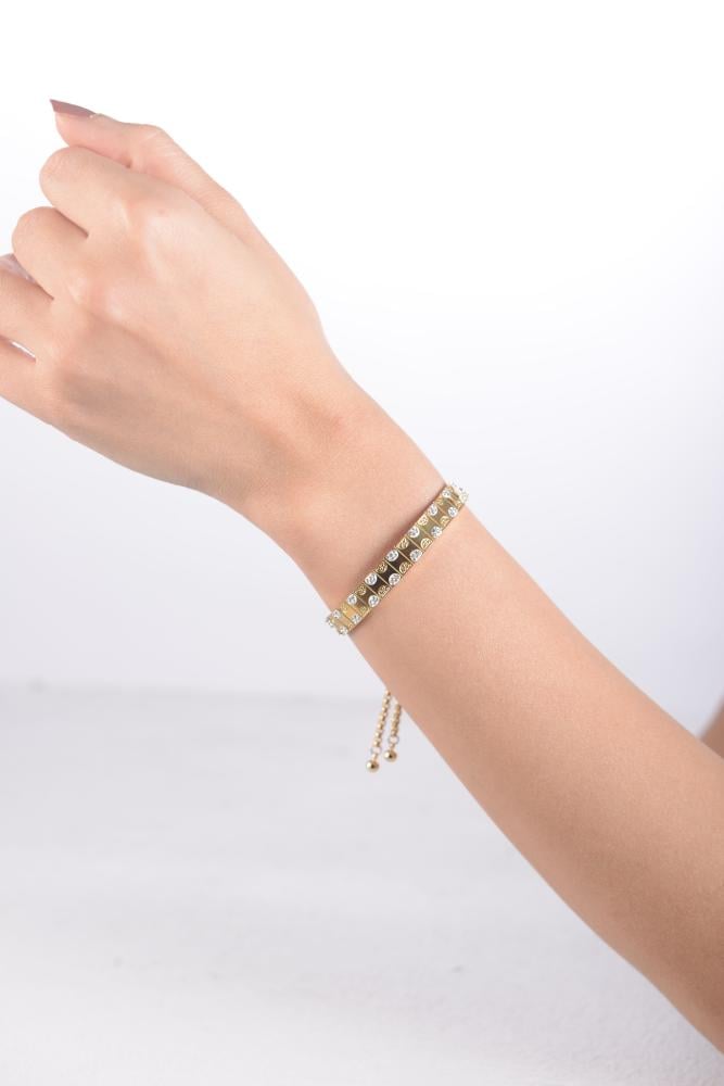 أضيفي لمسة من الرقي إلى إطلالتك مع هذه الإسورة الأنيقة المصنوعة من أستيل لامع عالي الجودة. تتميز بتصميم ناعم مرصع بفصوص براقة تمنحها مظهرًا فاخرًا يلفت الأنظار.