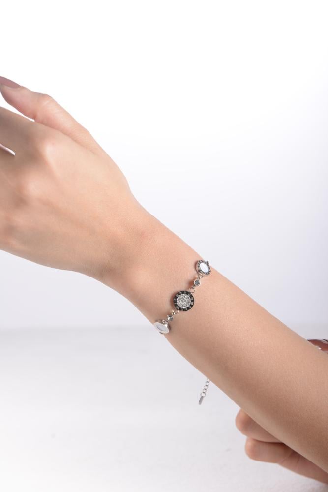 أضيفي لمسة من الرقي إلى إطلالتك مع هذه الإسورة الأنيقة المصنوعة من أستيل لامع عالي الجودة. تتميز بتصميم ناعم مرصع بفصوص براقة تمنحها مظهرًا فاخرًا يلفت الأنظار.