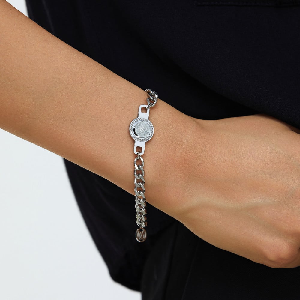 أضيفي لمسة من الرقي إلى إطلالتك مع هذه الإسورة الأنيقة المصنوعة من أستيل لامع عالي الجودة. تتميز بتصميم ناعم مرصع بفصوص براقة تمنحها مظهرًا فاخرًا يلفت الأنظار.