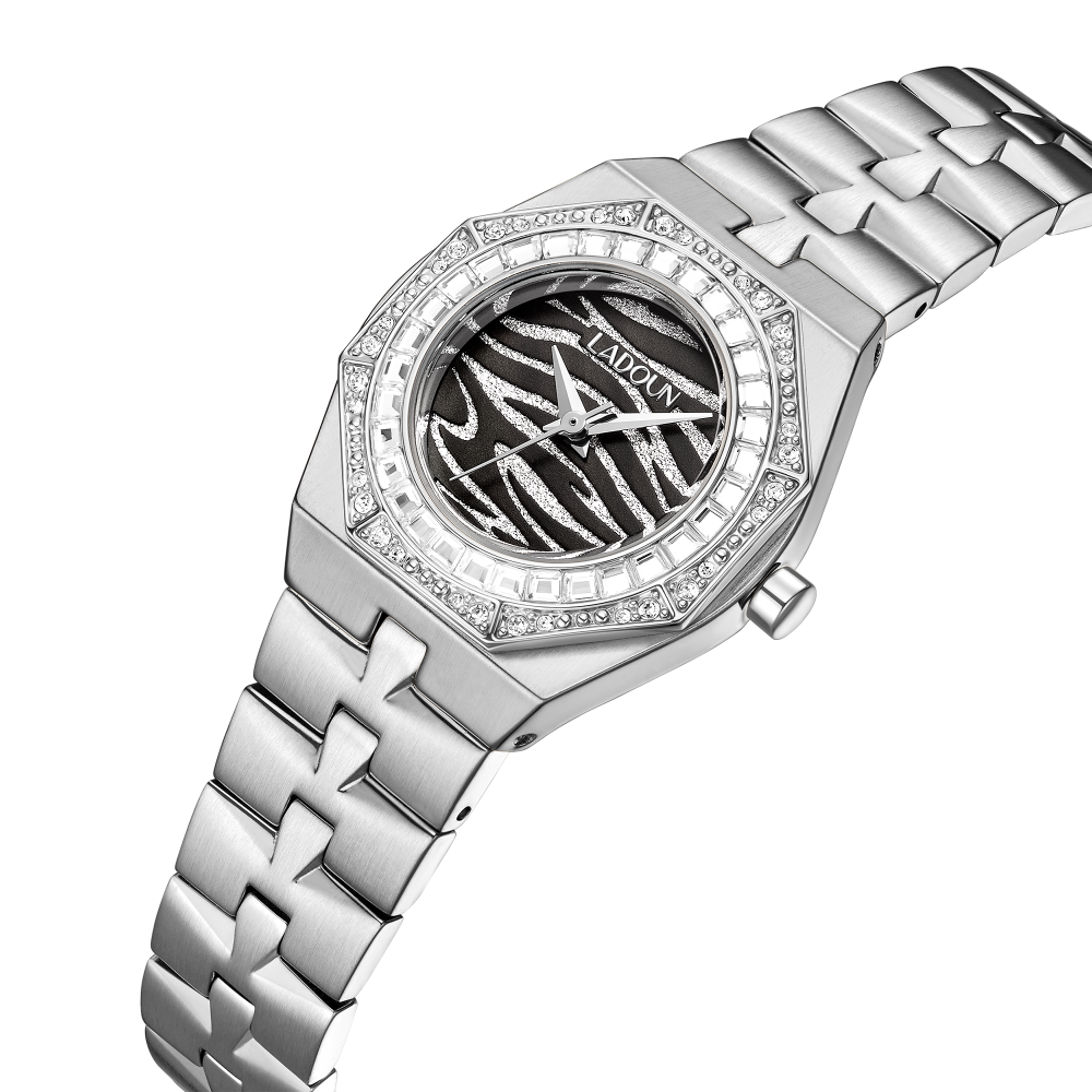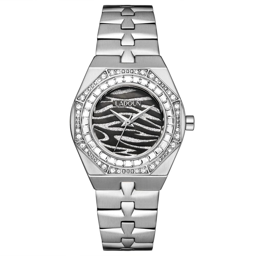 ساعة نسائية فاخرة من LADOUN – تصميم دائري فضي