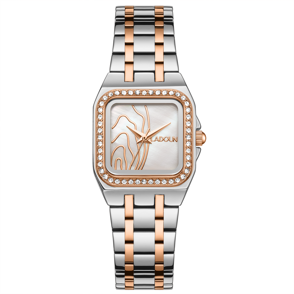 ساعة نسائية فاخرة من LADOUN – بلون فضي و روز