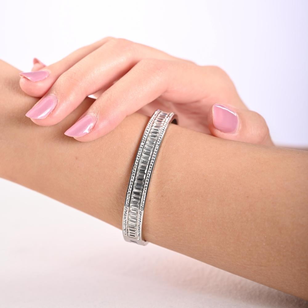 أضيفي لمسة من الرقي إلى إطلالتك مع هذه الإسورة الأنيقة المصنوعة من أستيل لامع عالي الجودة. تتميز بتصميم ناعم مرصع بفصوص براقة تمنحها مظهرًا فاخرًا يلفت الأنظار.