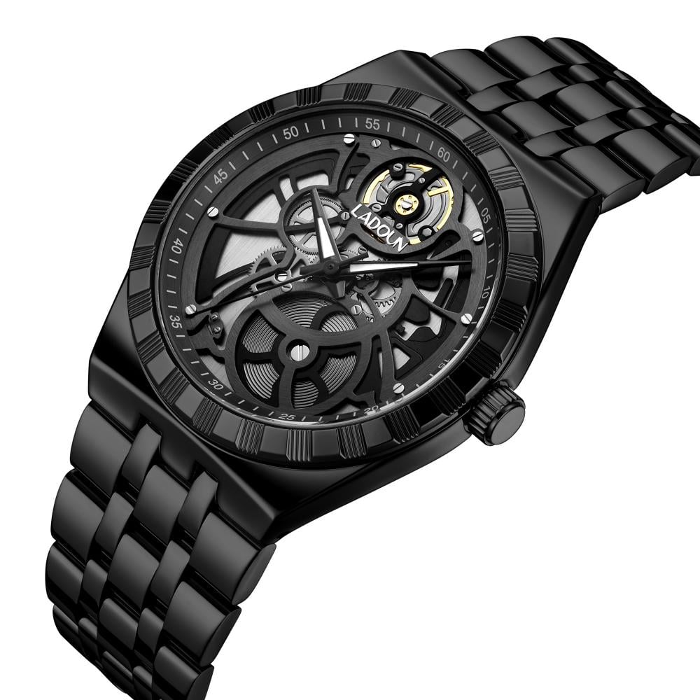 - ساعة رجالية مذهلة من لادون بسير من الستيل باللون الاسود الكلاسيكي.